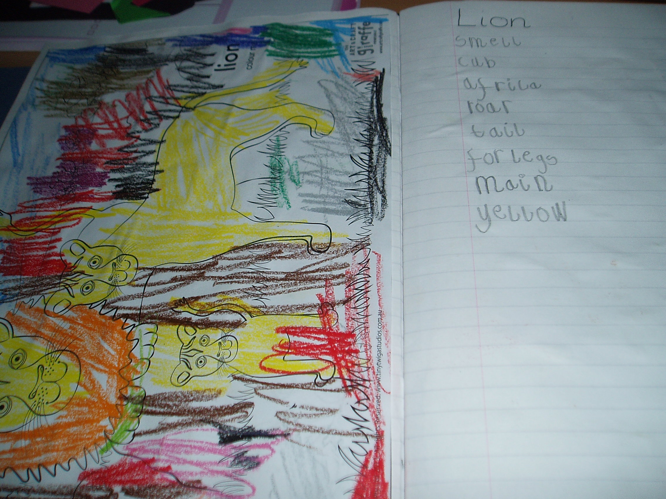 After we had finished this Blue had enough so he went off to play but Pink and I got out the animals book that she is making and did her lion page and her elephant page. Pink is loving her animal book so much that we have also started a flower book. The idea behind these books is that she colors in a picture and then on the opposite page writes a few words about that picture. It is great for her writing and spelling and she gets to learn about her favourite animals.