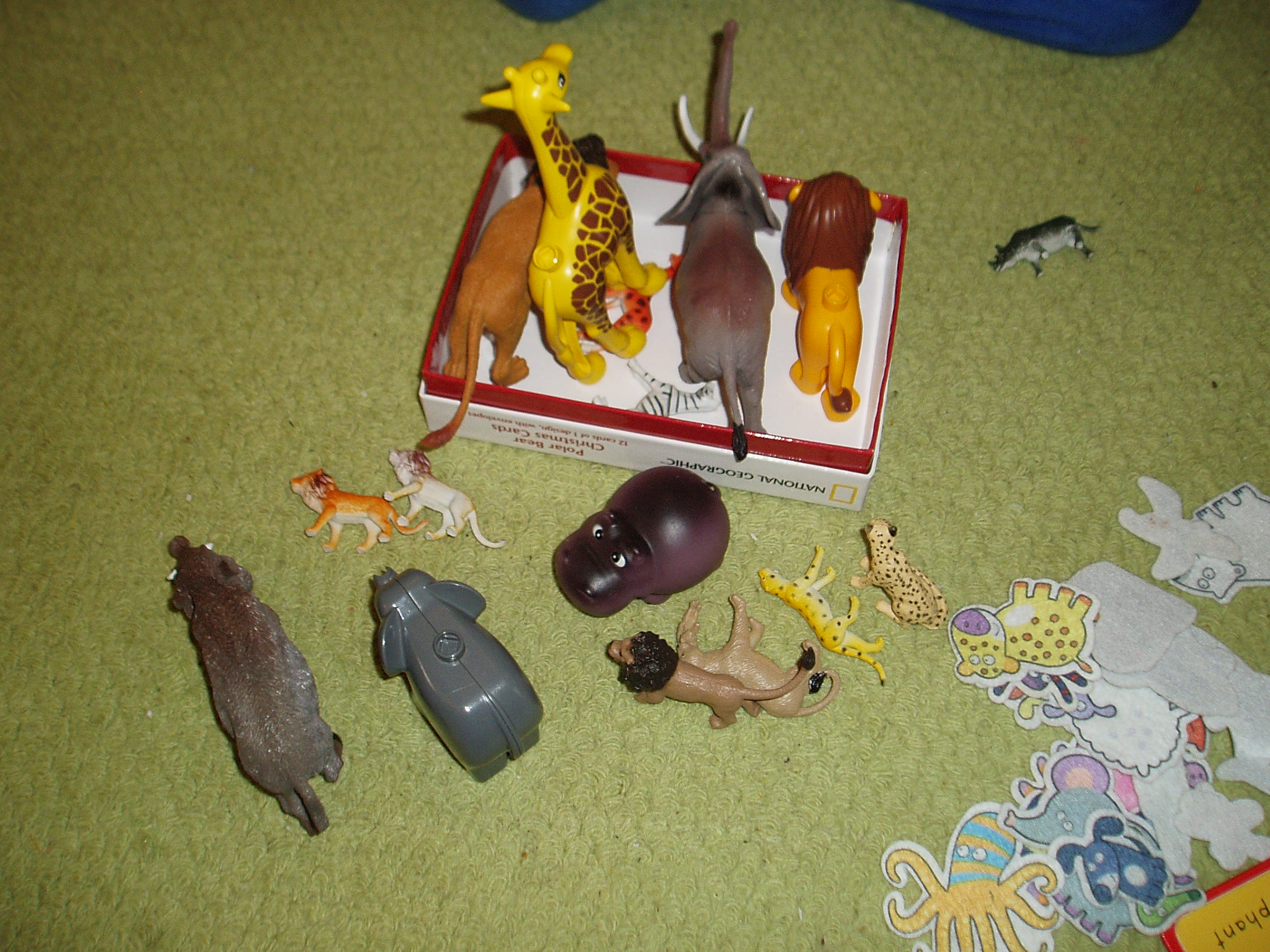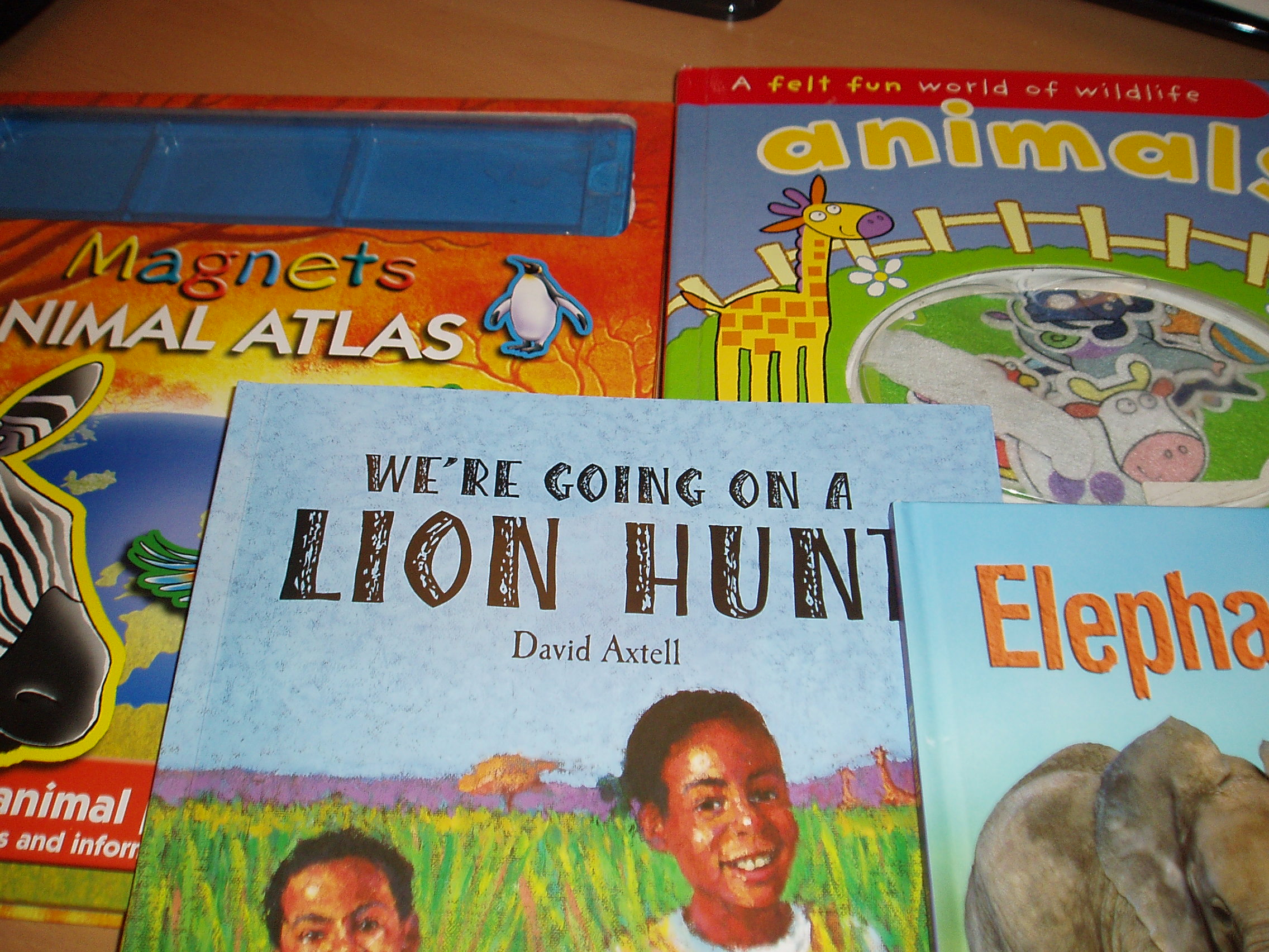 We then started reading the Lion Hunt. As I read the story the kids dug in their tub of plastic animals to find the different animals in the pictures.