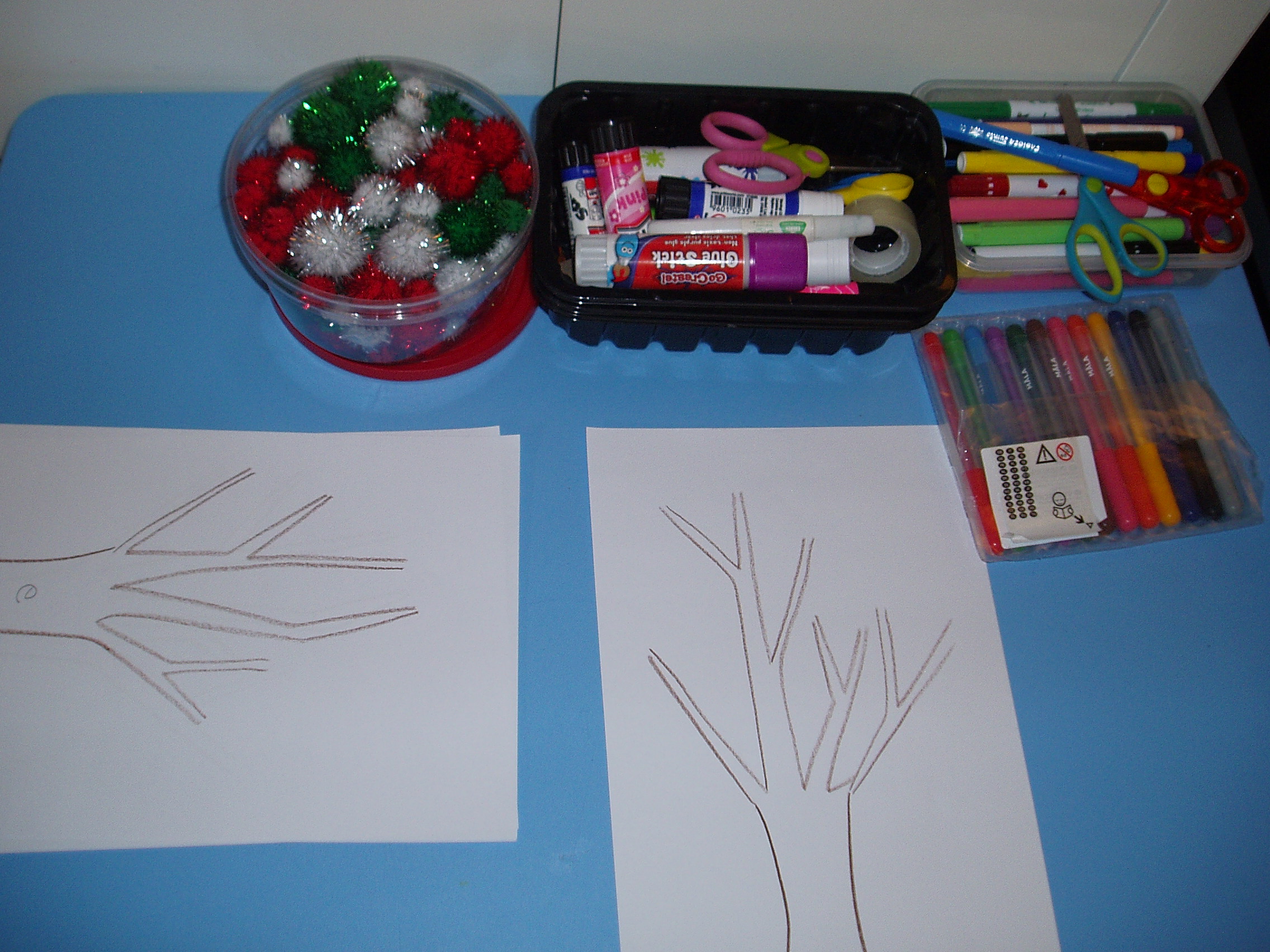 We decorated out trees, sorry I did not manage to get a photo of the finished product as Pink gave it away as a present as soon as she had finished it