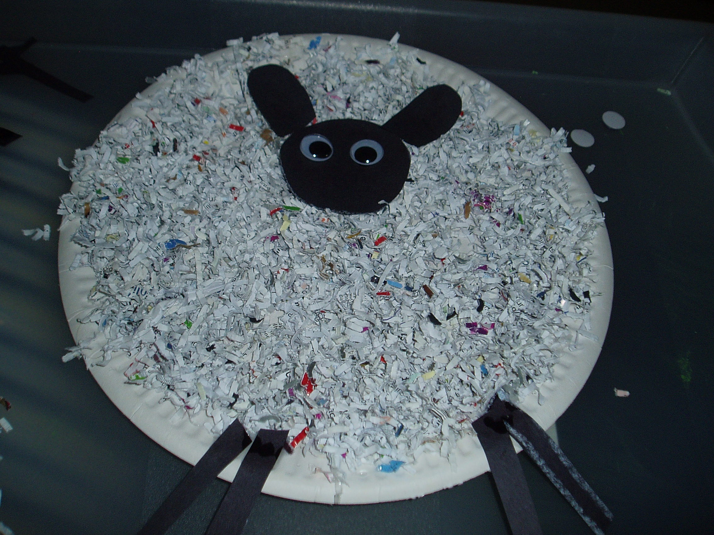We made some sheep with our paper plates and some shredded paper