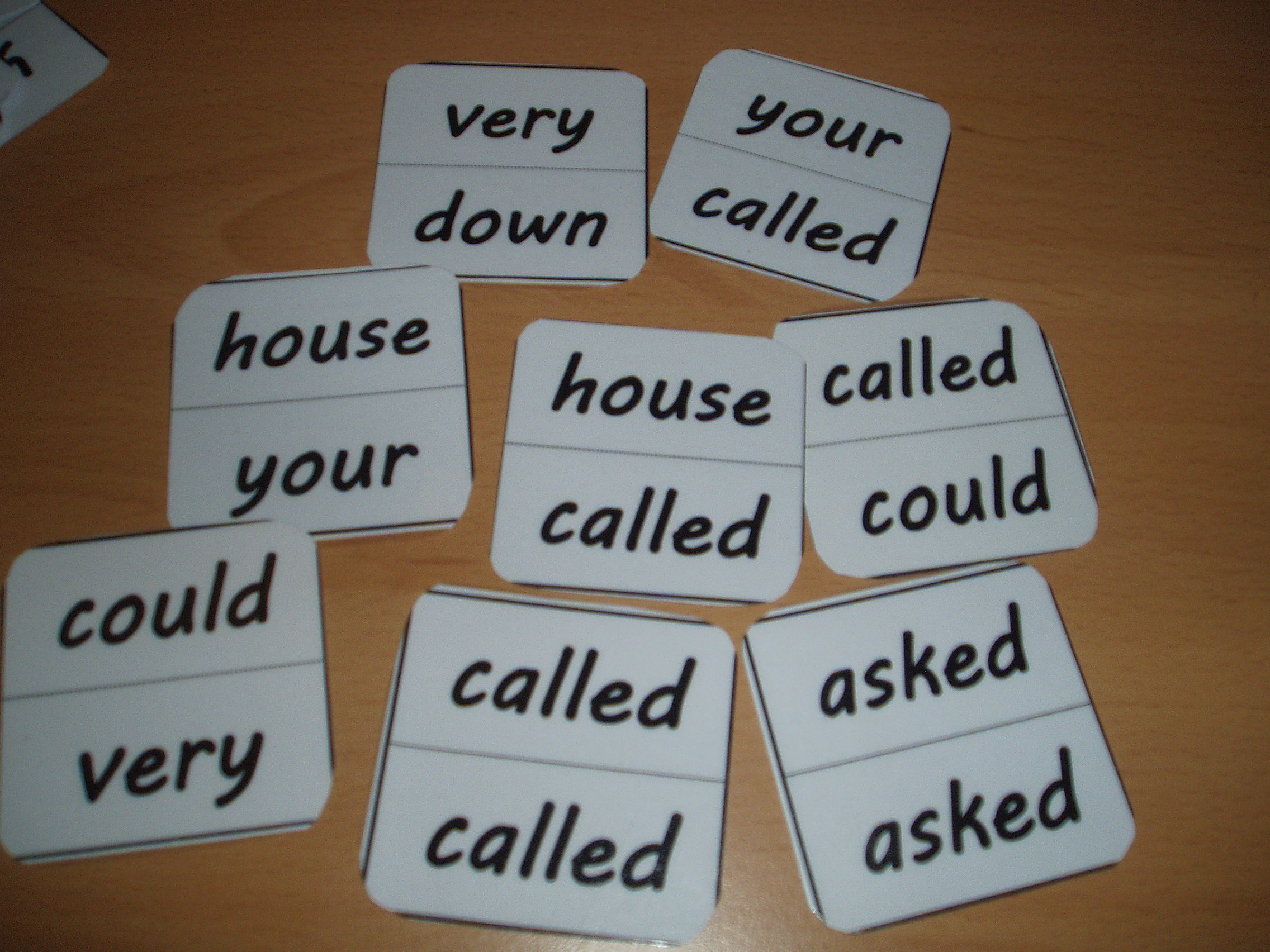 The first set we did used some of the harder words from the first 100 high frequency words. The words I used are : very, your, called, house, could, asked, little, down. Word dominoes download here.