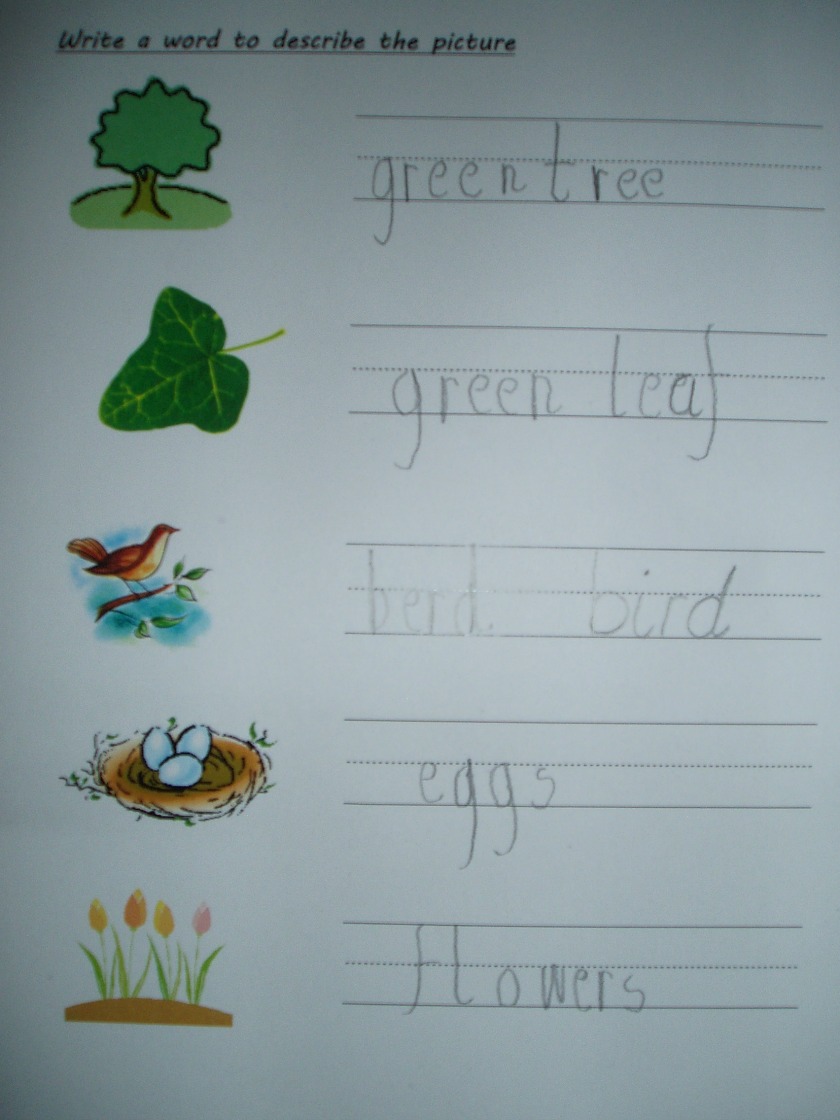 We have also been doing some more of the spelling pages that she asked for. This one is just a general one page of nature words. On her first attempt she did make a few mistakes but it was because she was trying to use her phonic sounds to spell the words.