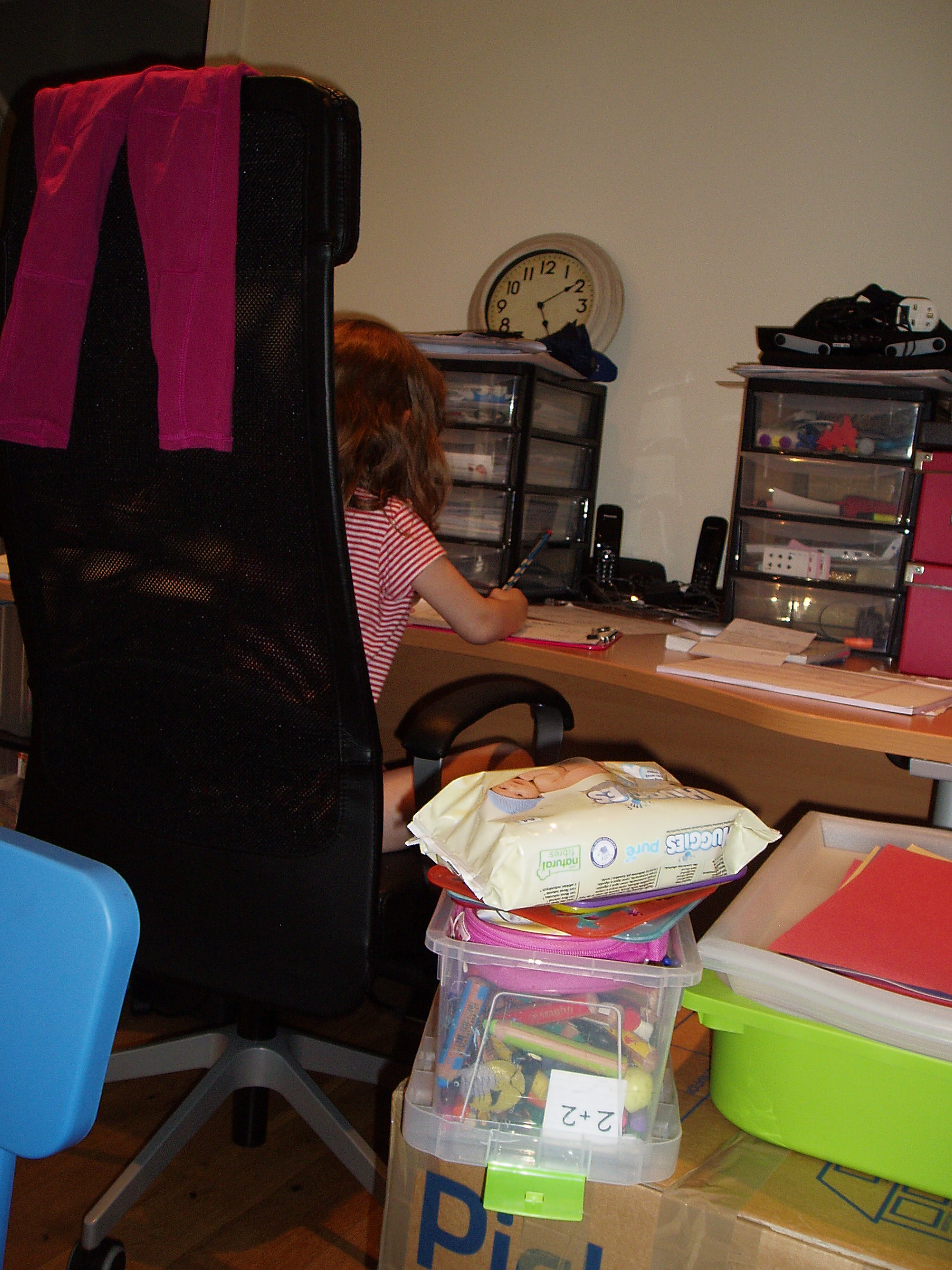 She loved joining in with packing the boxes and driving in the van with her dad to take them to the new house but what really surprised me was that once we got to the new house she very quickly got her “school stuff” out and was drawing pictures, writing notes and reading her readers. I was not expecting this. I often have to ask her more than once to do her writing or her readers but yet in the week that I took all the pressure off and was trying to get our new house sorted she did it all by herself. Makes one think that maybye half the battle is actually just us parents telling the kids what to do instead of letting them do it themselves when they are ready.