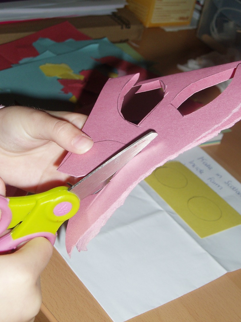 We started off getting the kids to help me trace / draw the parts of the flower that we needed (Blue even tried to to help by tracing around a tip-ex bottle to get a circle).