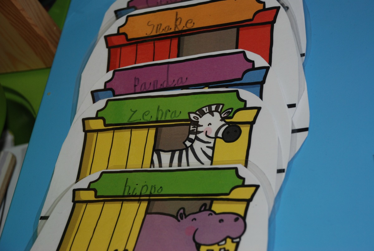 We also used them to practice our spelling. Pink wrote the name of the animal on each carriage.