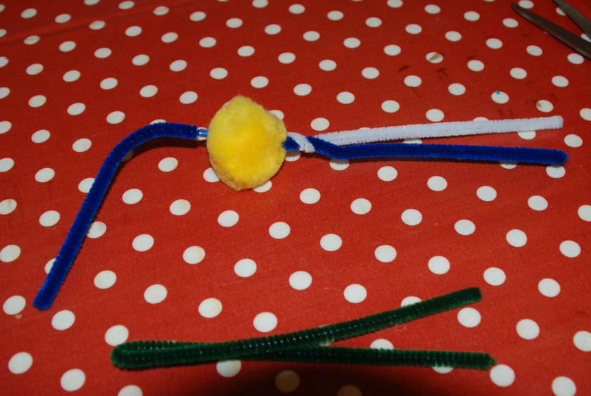 We then wrapped the green pipe cleaner around the 1st and 2nd legs which also gave us the 3rd and 4th leg on either side.