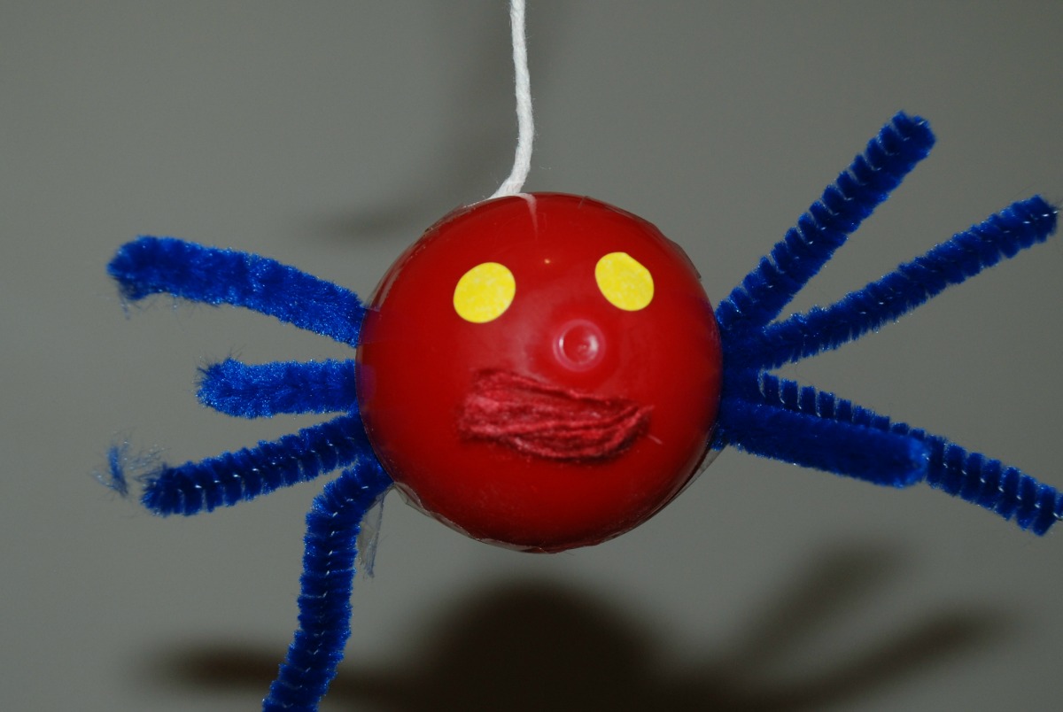 The string allows the kids to hang the spiders. The first spider that we made did not have any string and Blue got very frustrated as he really wanted to hang the spider on the back of his chair. We also found that adding some beans to the eggs before you sealed the eggs gave it a nice sound – Blue also really liked that.