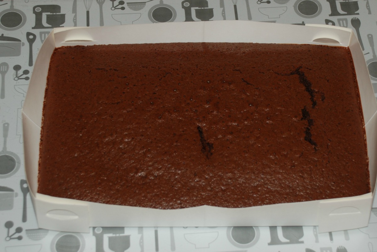 We start off by baking a simple tray cake (I admit this time I cheated and used a cake mixture from Tesco’s – next time provided there are no sore kiddies fingers we will bake the cake from scratch).