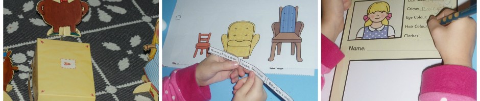 Pink was quite taken by how the bears are described and has spoken to me on a number of occasions about how Daddy bear was grumpy, baby bear was sad and that Goldilocks was sleepy and hungry which according to her is why she was naughty.  So I was thrilled when I found these great Goldilocks character writing pages on Twinkl (Platinum).