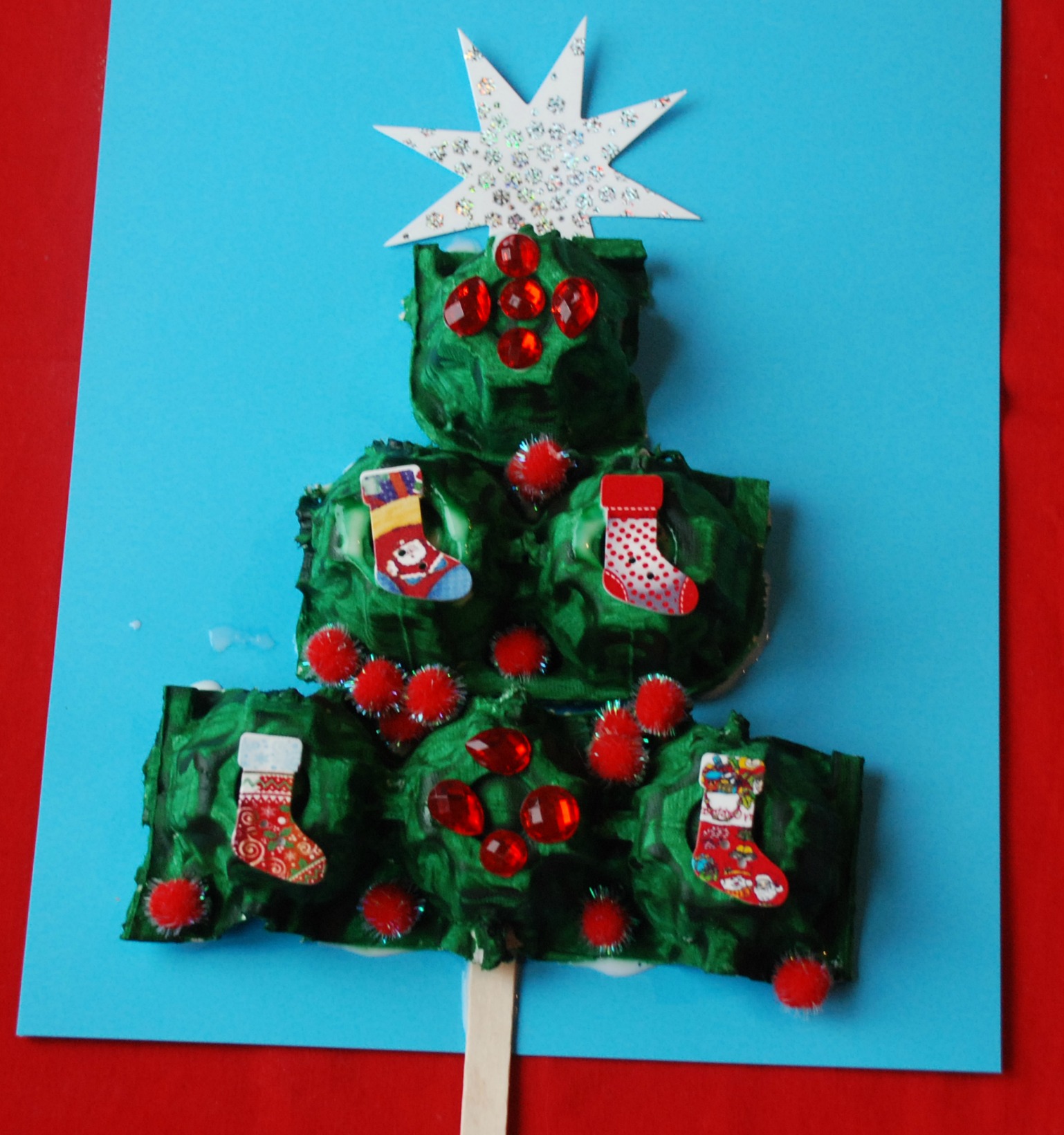 And lastly my favourite egg carton Christmas craft has to be this lovely Christmas tree that my daughter made. We painted the egg cartons, glued them together added a lolly stick for the tree trunk and decorated it. I just love it.