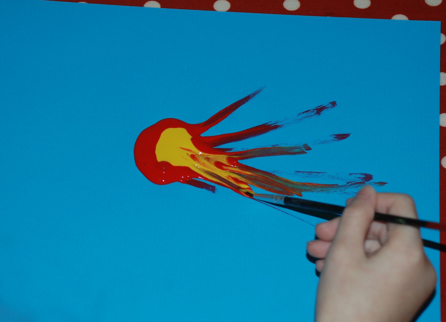 And the kids used their paint brushes to drag the paint (my little boy’s words) out onto the paper.