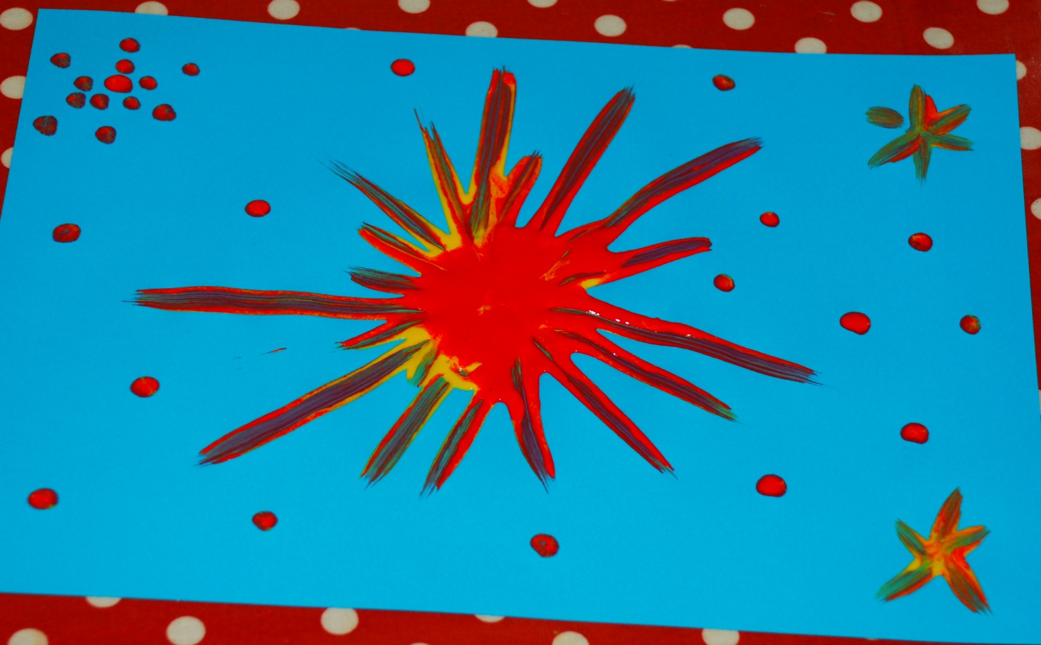 We started off the usual way by putting some paint out in a painting tray and the kids painted some fireworks.