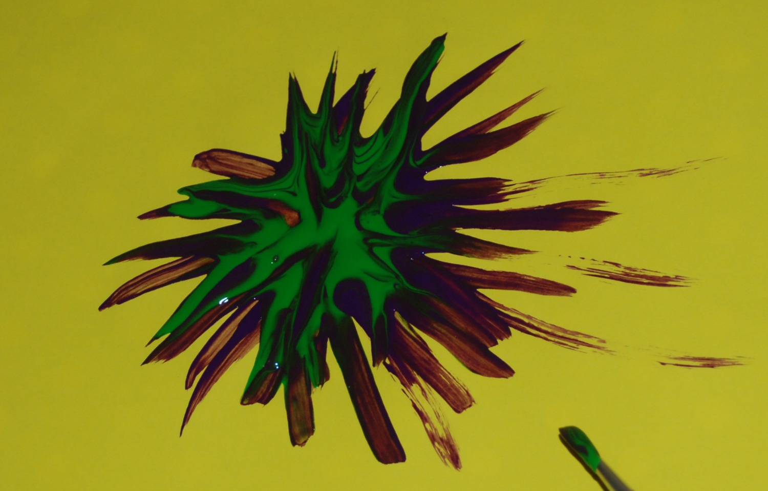 But then we tried something different – I put two small blobs of different colour paint in the center of a piece of paper.