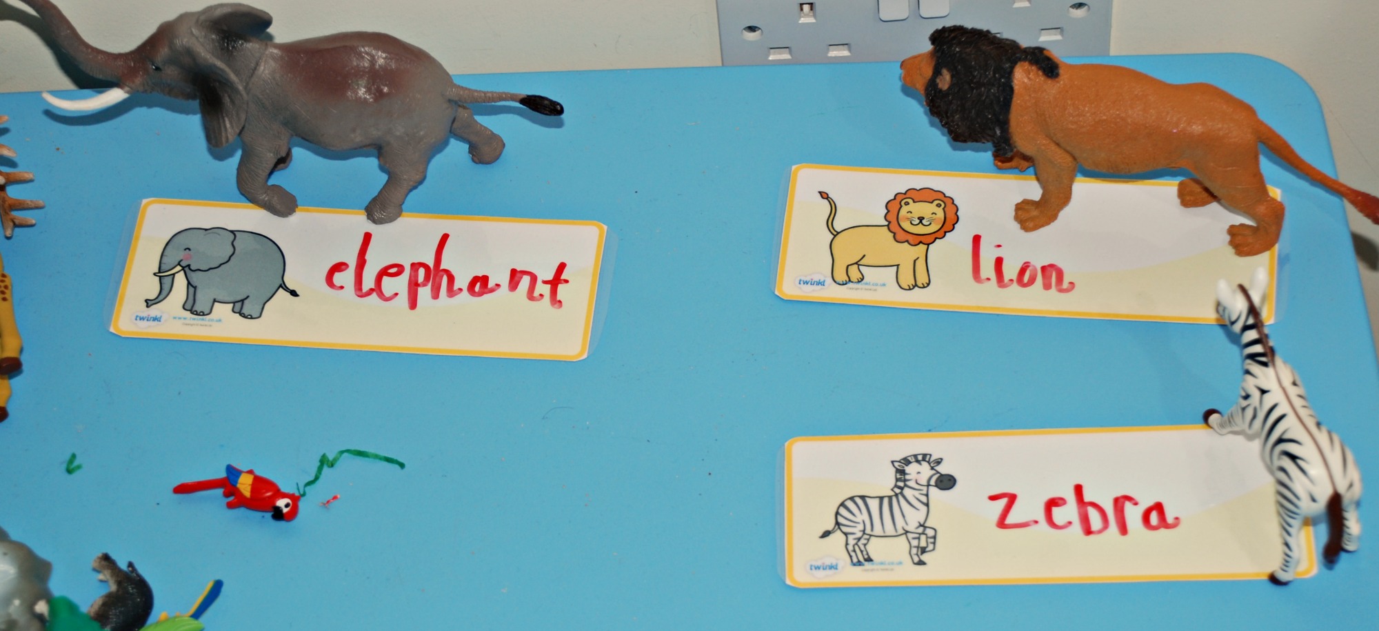 The safari labels and the  african animal word mat that my daughter used are FREE to download from Twinkl.