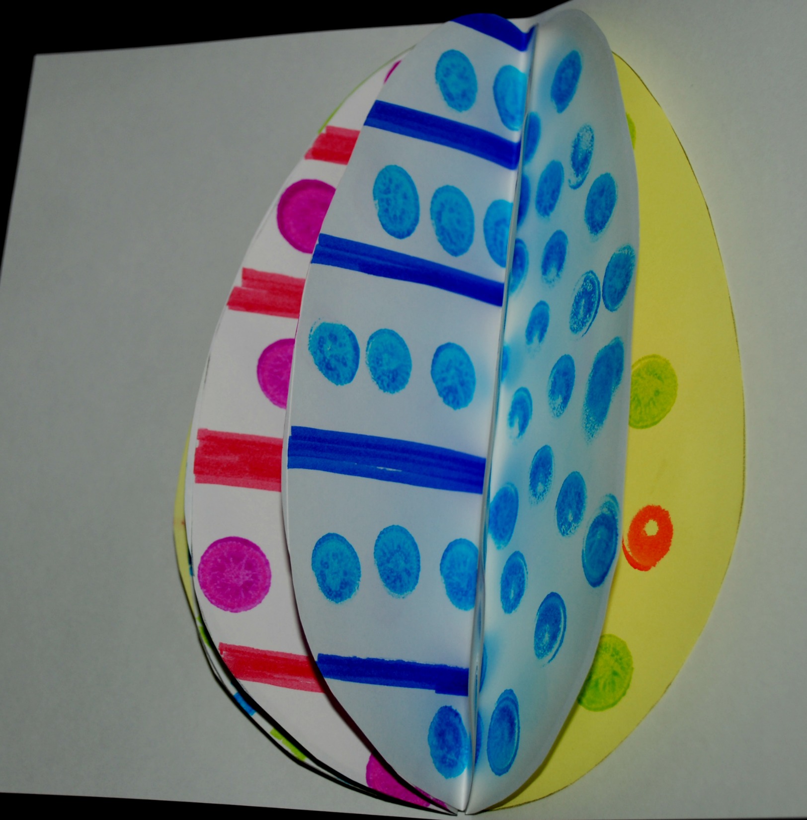 Then we folded our easter eggs in half (long ways) and started sticking them all together.