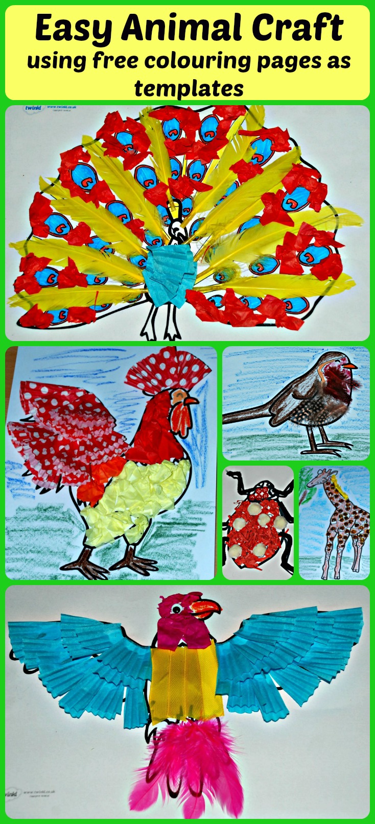 I printed off these Free animal colouring pages (Twinkl) a while ago and they have been lying around the house. So when my daughter asked me if we could do some crafts together, considering I had only slept for a few hours the night before I honestly could not think of anything except for collages. I suggested it and she immediately started gathering goodies from our art supplies. I grabbed my animal pages and she was off. I must confess I never expected her to go so crazy and do so many. Hopefully all the photos below might give you some ideas, so if you are ever as tired as I felt then hey maybe you will remember these and get your kiddies to craft while you sit and drink cup after cup after cup of tea (or coffee).