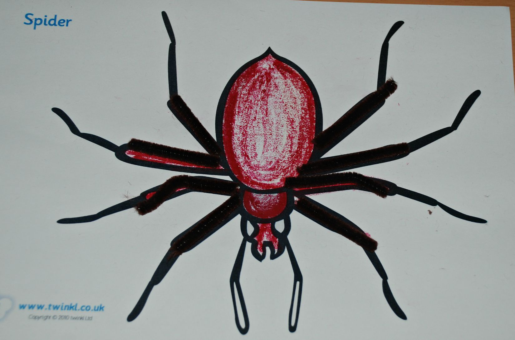 The Spider was more colouring with oil pastels and just some pipe cleaners added for the legs but I love the end result so had to include it (she is just starting to play around with the idea of making her colour darker on the outlines and lighter in the middle, it is still a new idea for her).