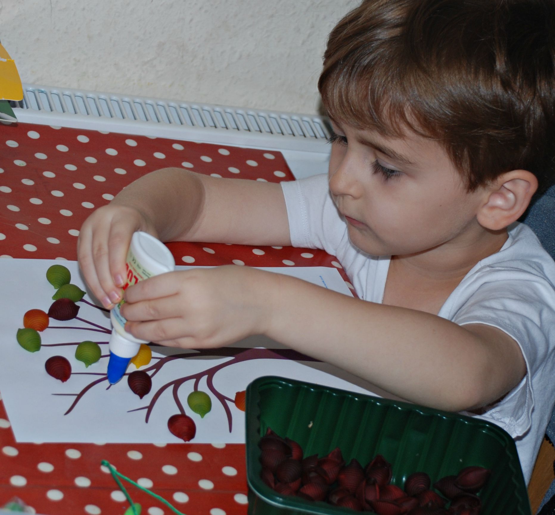 Both my kids and two of their friends had a fun time making some autumn trees with some dyed pasta (I dyed it the afternoon before with some food colouring and a bit of vinegar in a zip lock bag and then left it out to dry over night). We ended up with lots of different trees.