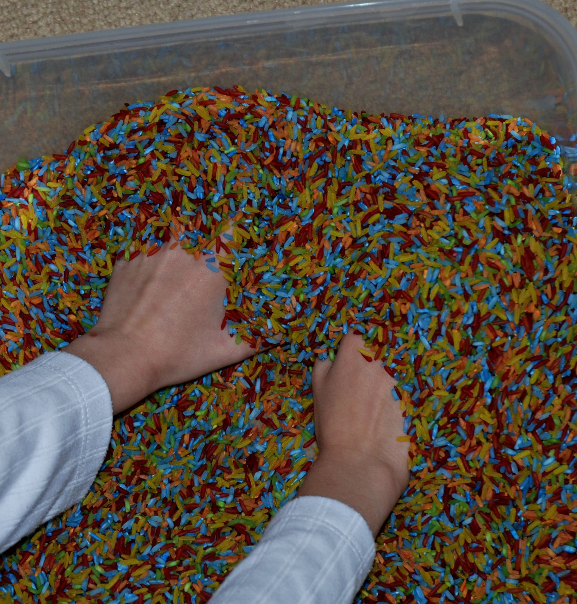But now after having the tubs around the house and being allowed to slowly discover them bit by bit with no pressure, she will now gladly sink her whole hand into a tub and actually says she finds the bean and rice tubs relaxing.
