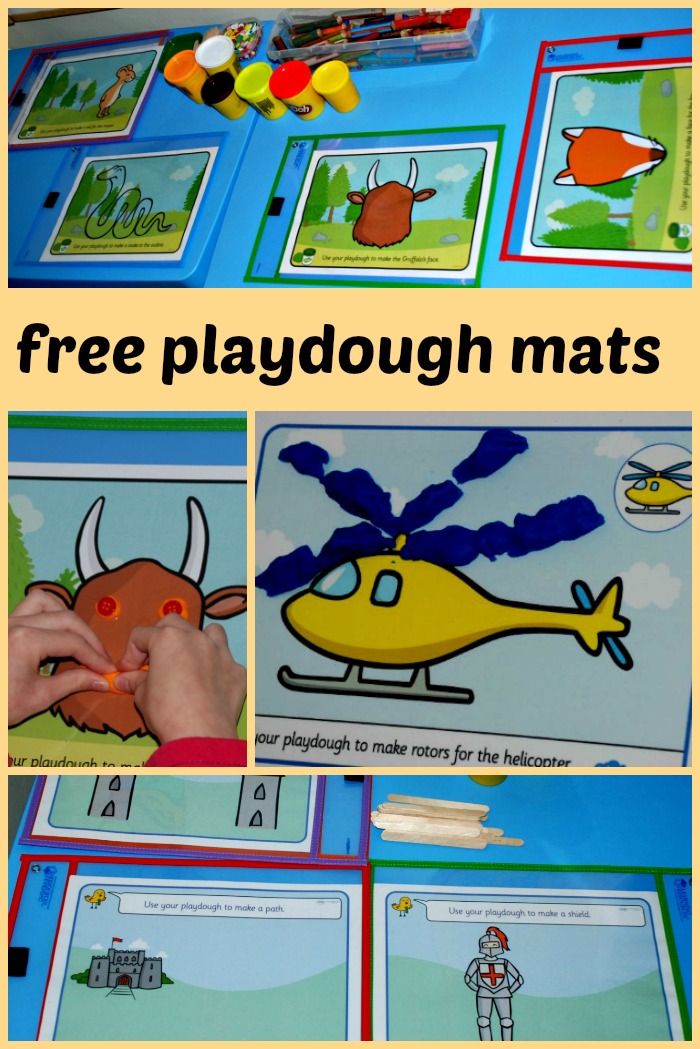 The Gruffalo playdough mats are probably one of my son’s favourites (Adjustment – I have been informed that Twinkl have been asked to remove all Gruffalo resources). He loves the characters in the story and always has fun creating his own versions. We use our Gruffalo mats inside our Learning Resources Write and Wipe pockets.