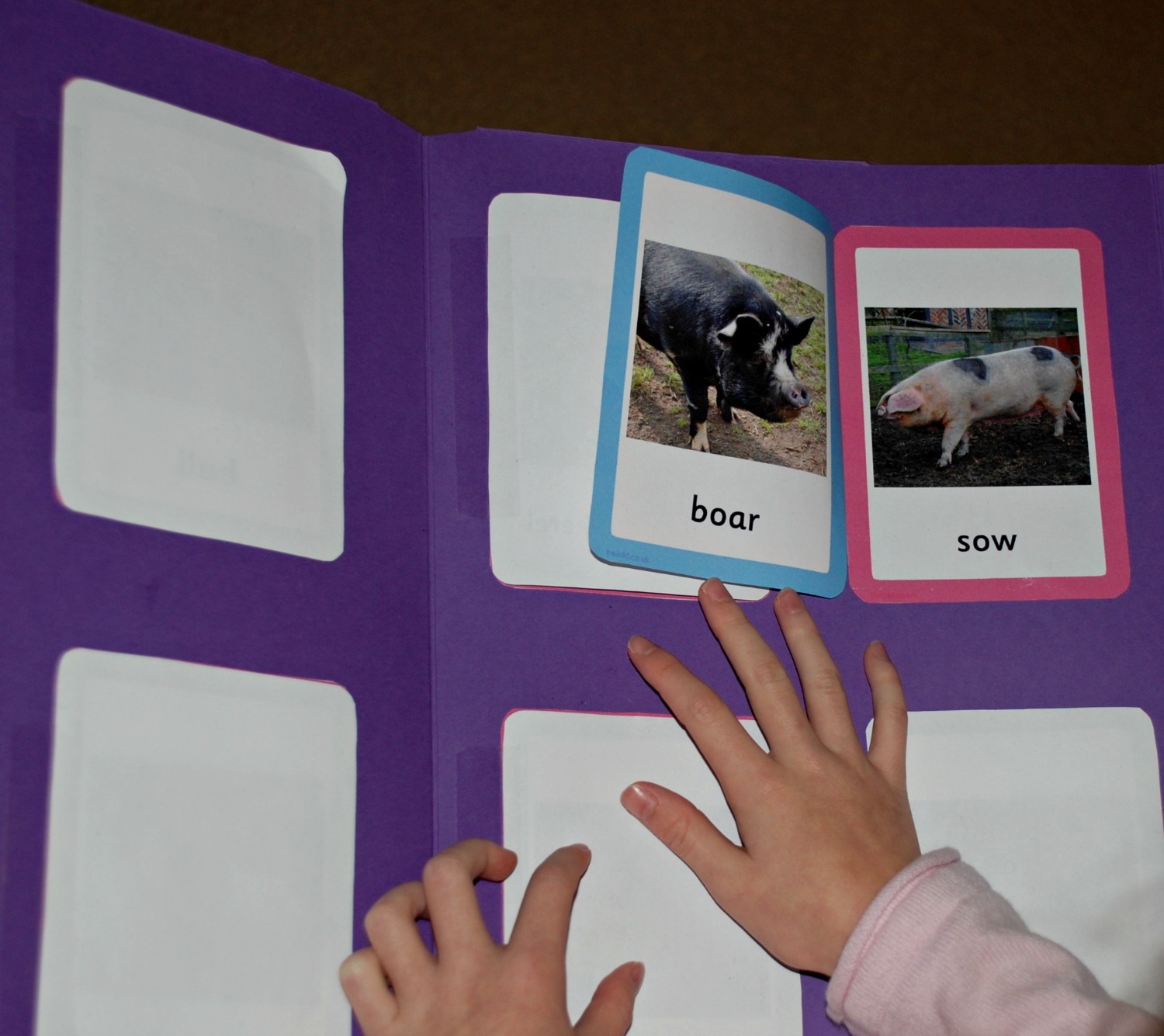 Our latest folder is this Male and Female animal name folder using the lovely cards from Twinkl. My kids really loved the Animal and their Young folder so I wanted to try to build on that interest. The Animal and their young folder was such a hit that it is now permanently upstairs in the kid’s bedroom as the kids are constantly using it to “teach ” their toys.