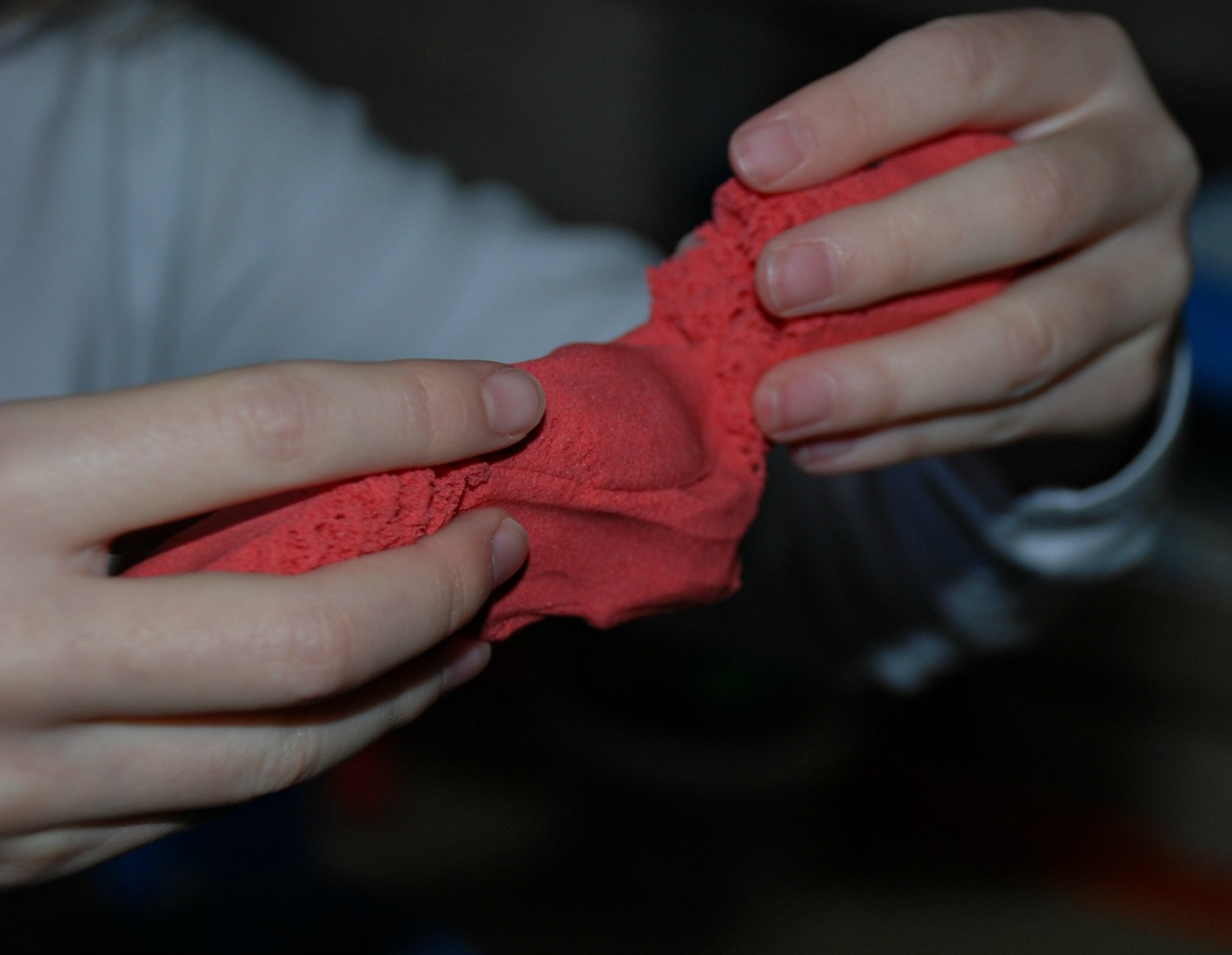 To start with both kids began using it like they would play dough – they rolled it, made shapes with it, used their play dough cutters and other goodies with it.