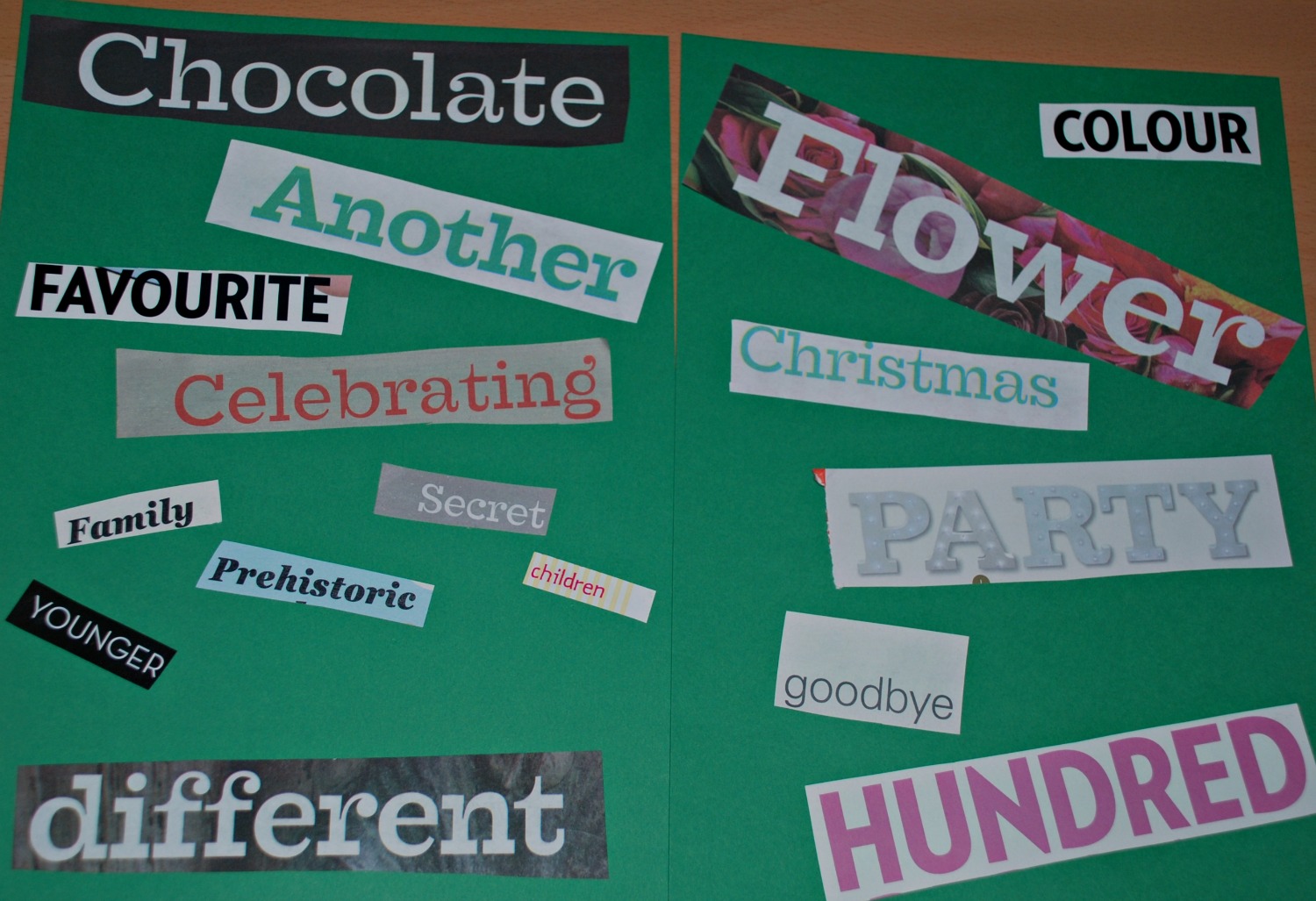 Spot the word folding - using a 4 card and words cut out of old magazinesI  stuck the two pieces of A4 card together with sticky tape.