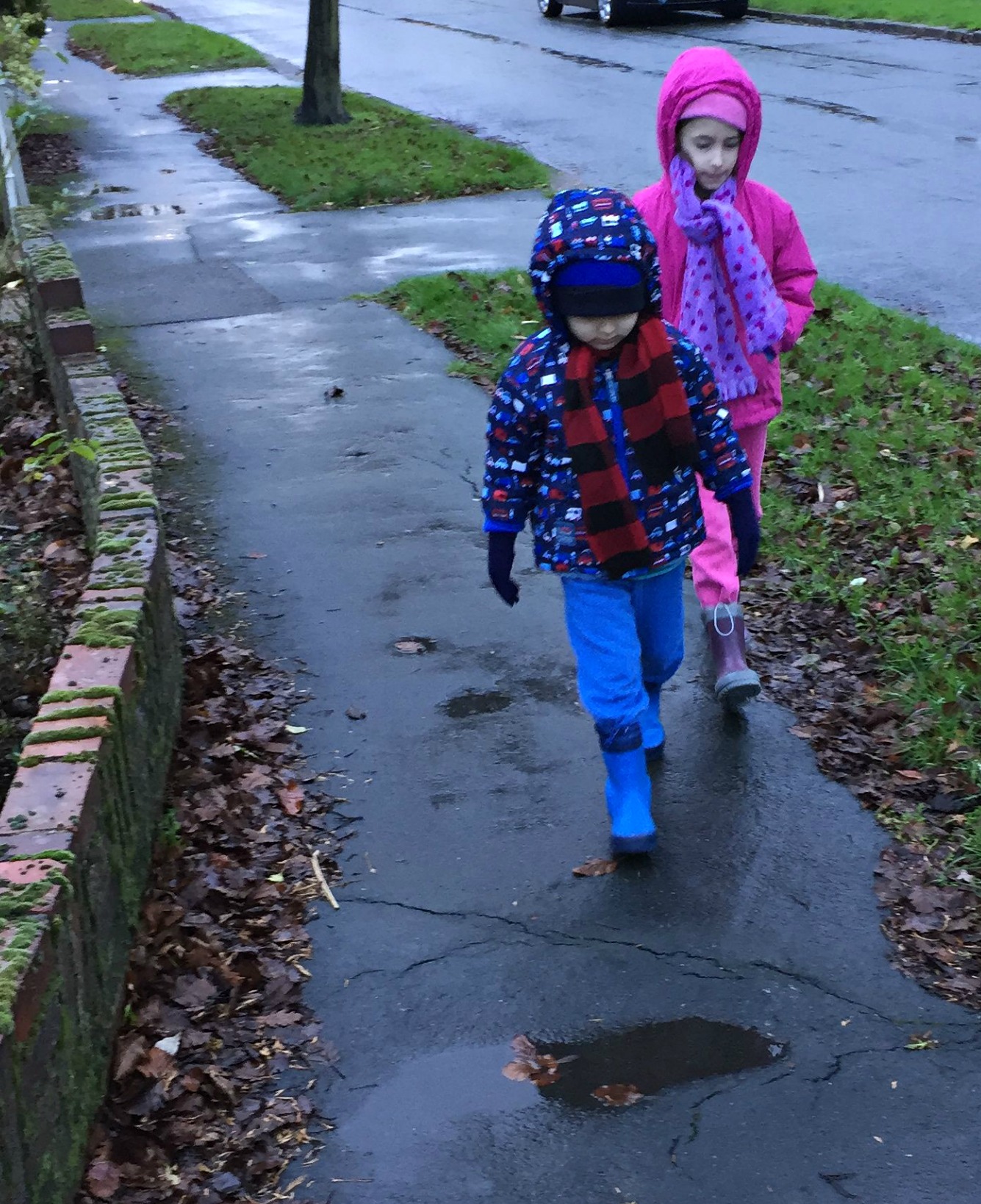Anyway last week we decided to just go for it.  So yesterday I had my backpack all ready (ear muffs, extra clothes, snacks and a soft toy to cuddle if needed) the kids were dressed in cosy soft clothes and in the cold rainy weather we set off.