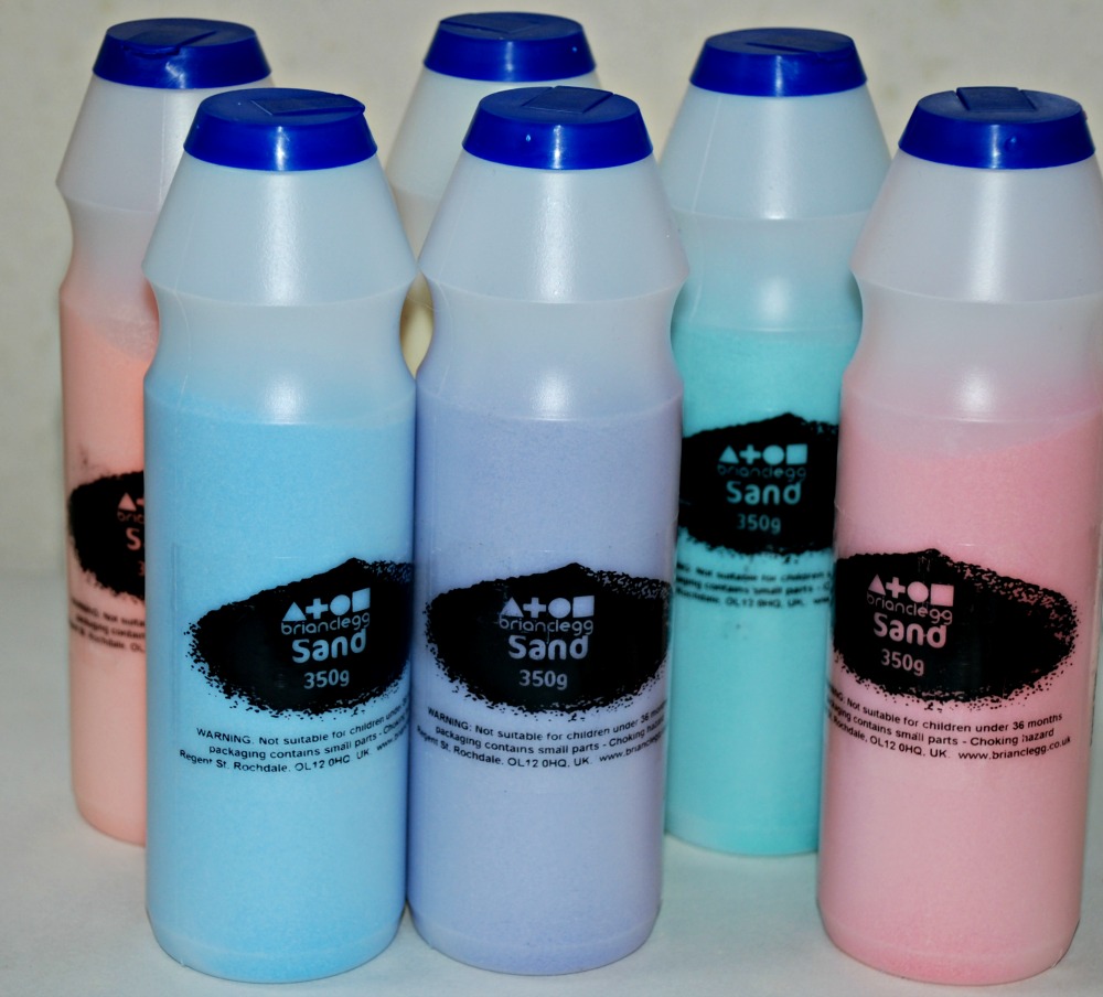 My kids love sand art but in the past we bought small sets of sand art and they used the coloured sand to decorate pictures.  I never realised you could just purchase the coloured sand in bottles – like this set of six – pastel coloured sand.