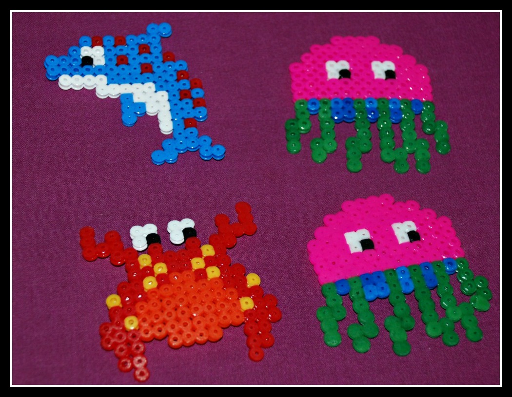 So what comes in the Sealife fuse bead set – 3 small boards, 3 sheets of ironing paper around 900 beads and picture examples of 6 sealife creatures.