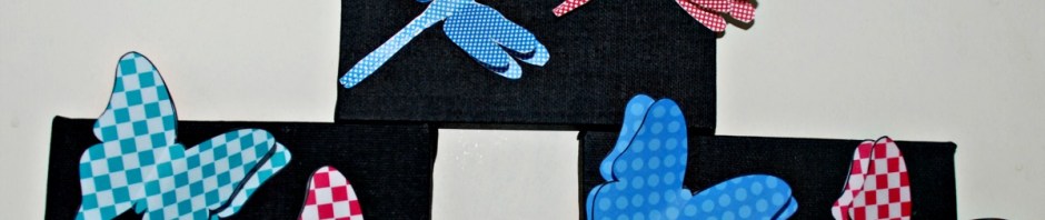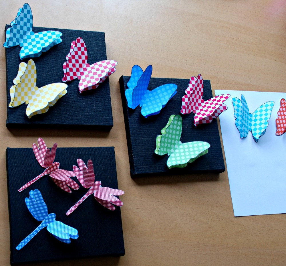 Selection of the 3D butterflies and 3D dragonflies from the Twinkl website3D butterflies and 3D dragonflies on some black canvasesTo attach the butterflies and the dragonflies onto the canvases we used some Pritt Glue Dots.  I have only recently started using these and I am loving them.