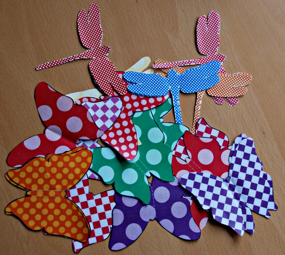 We already had a bunch of the butterflies and dragonflies cut out from some previous projects so we started using these but also ended up printing off a few more so that we could have the colours that we wanted.