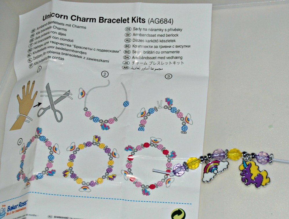 She enjoyed making those bracelet so much that so also had a go at making some charm bracelets. Again everything you need to do the craft while you are out and about is in a small plastic bag, nice and easy to take with you, not big and not heavy, very easy to slip into my handbag. The craft kits also contains easy to follow instructions.