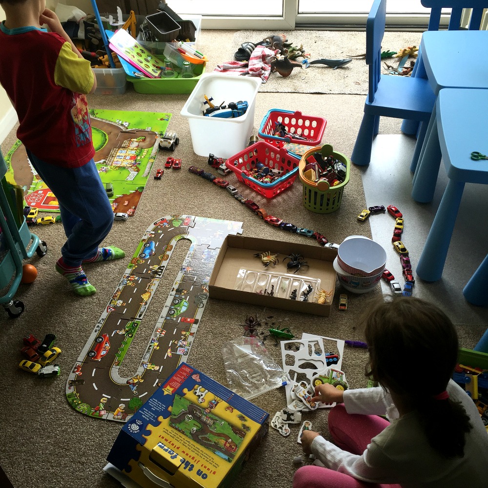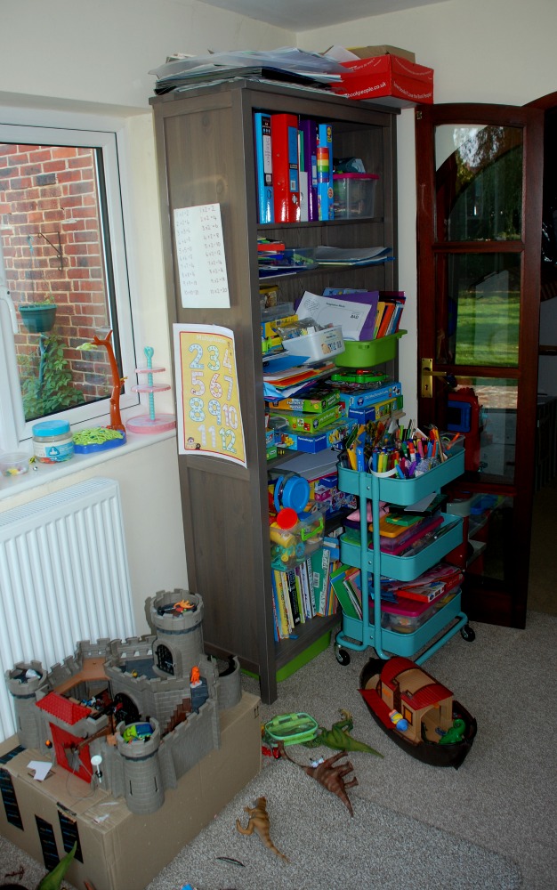 And the kids move around the toys, tables and craft cart as they want (sometimes out into the garden). A good day at home normally means this area ends up looking something like this.