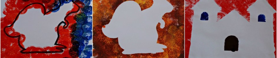 This time we used the templates as a basic outline and the kids dabbed around the templates. They both choose autumn colours (and some blue for my son, he can not do an art project without including blue).