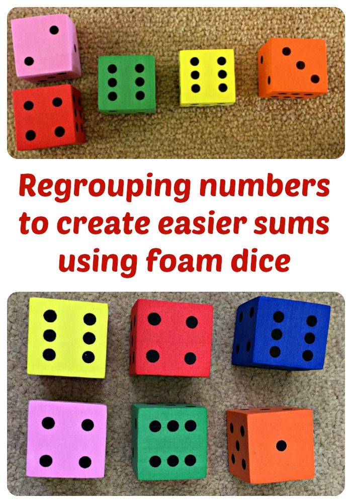 Using the dice to practice really seemed to help. It was fun and she was creating the sums and she has regrouping the numbers by picking objects up (the dice) and moving them.
