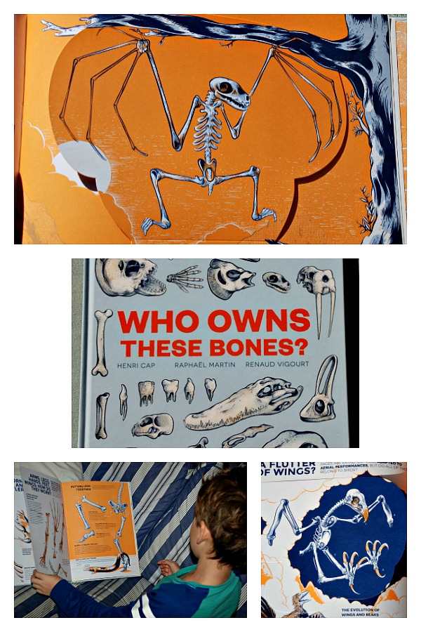 One of the unexpected topics that my kids are totally fascinated by are skeletons. I must be honest I never found them that interesting but both of mine love examining different skeletons and seeing how they are similar and how they are different. A while ago my daughter was searching through our book selection looking for animal skeletons to copy and I realized we did not have that many so I started looking for skeleton books and I found this one – Who Owns These Bones?