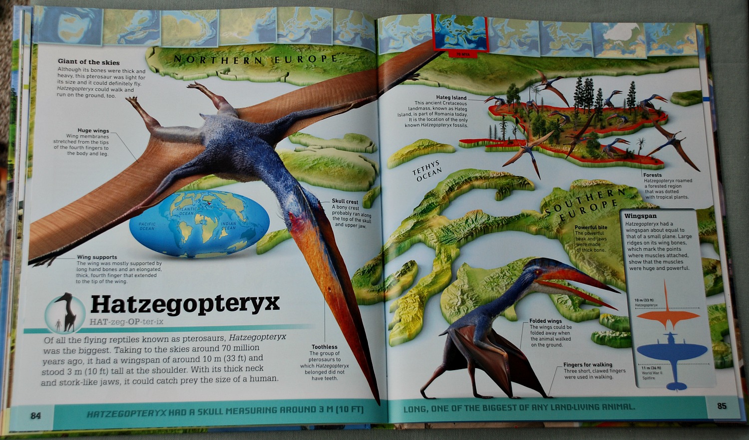 The Book starts by talking about the “Rise of the Dinosaurs” – which is how life forms developed on Earth. It introduces the three main periods of the Mesozoic era – Triassic, Jurassic and Cretaceous and then “what is a dinosaur”.