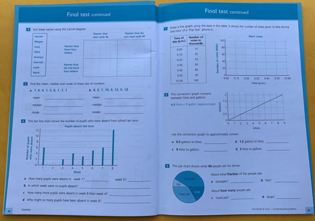 I am going to use the same Statistics workbook with my son that I used with my daughter. It worked well the first time and I like the way it progresses, I like the order it introduces the different graphs and activities (just makes sense ) and I found it was easy to link the workbook with extra worksheets from Twinkl when I needed it. It is the Understanding Maths: Statistics