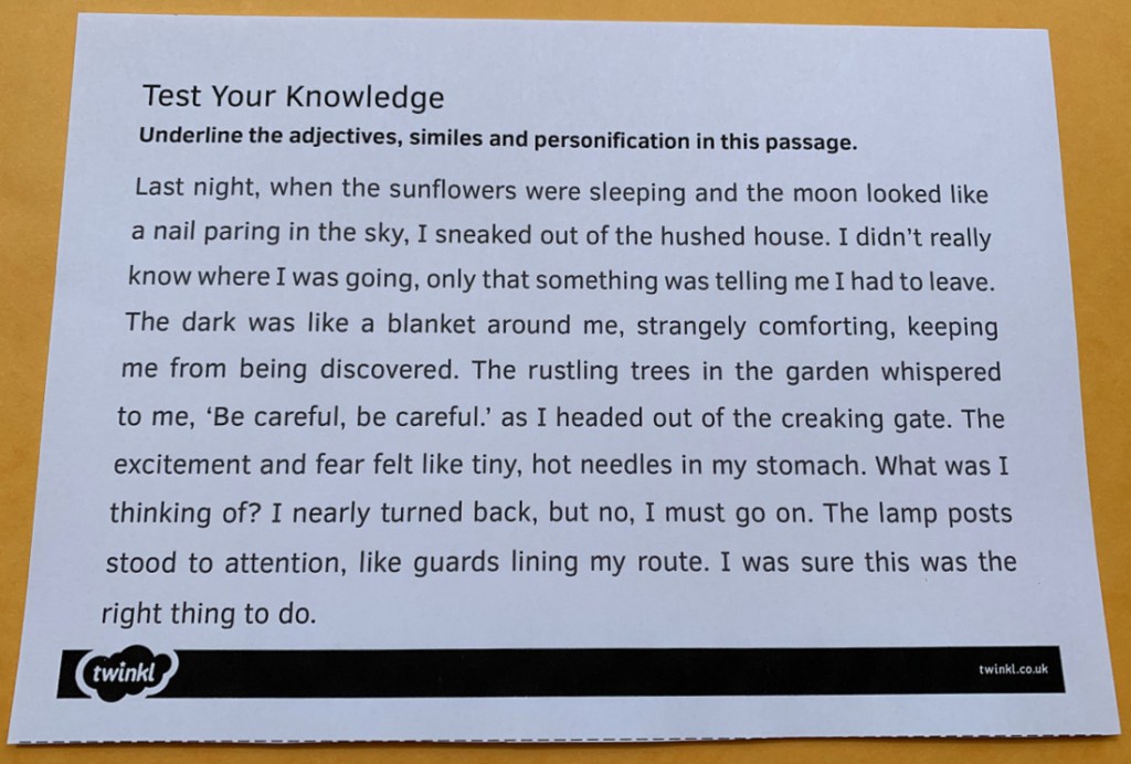 Each lesson has a PowerPoint presentation which is essentially the lesson – it is what explains a bit about the concept (i.e. what is a simile and how can you extend it). And each lesson also has at least 1 activity sheet (we liked all of the suggested activities in this unit but we did also search for a few extras activities on Twinkl for similes and personification – this is actually one of the reasons why I like using the site, you can always find other activities to add in if you want too). They also included a really nice booklet containing 4 examples of sunflower poetry.
