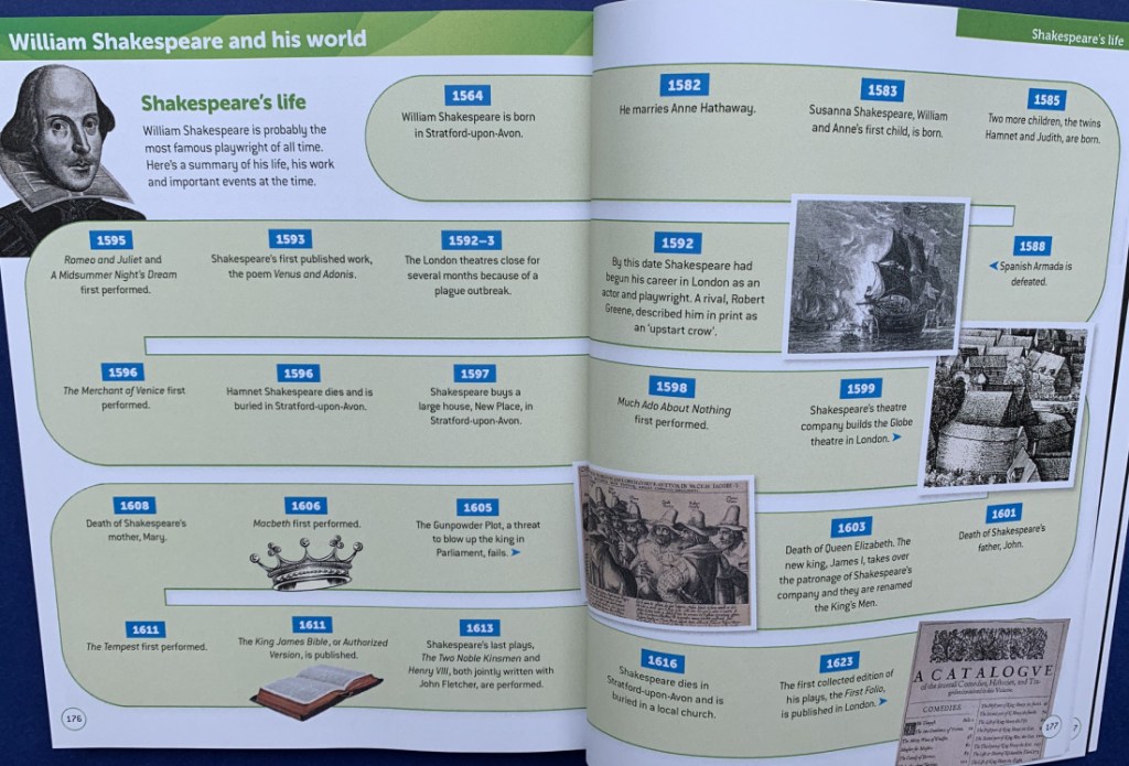 At the end of the play there is a brilliant timeline of Shakespeare’s life and a section called William Shakespeare and his life – which talks about his writing style and also what Elizabethan life was like – so it explains about things like marriage and courtship during Shakespeare’s time. And we strongly urge you NOT to avoid these pages. We have found the more you understand about Elizabethan life the more his plays come together.