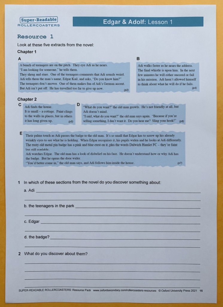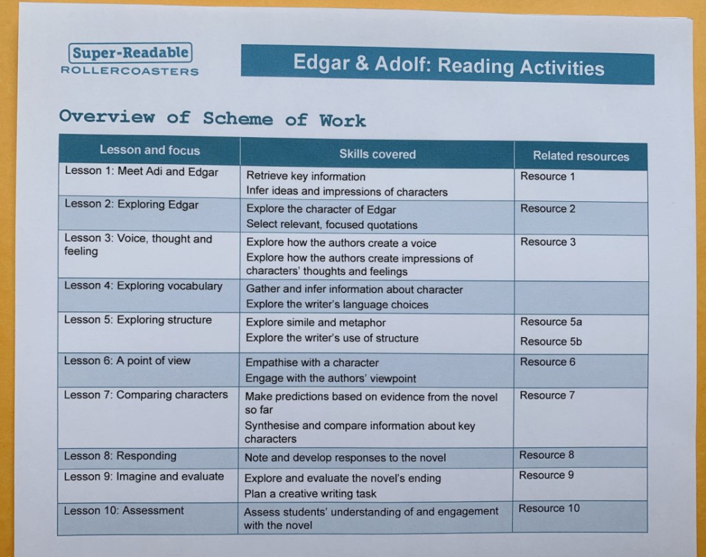 The Resource pack is similar the other Rollercoaster packs that we have used in the past but it has had a bit of a “spruce up”. And they now include some sample answers (which I think is really useful). Inside the pack you get a suggested way in which you can breakdown the story into 10 lessons and they include a suggested lesson plan and worksheets for each lesson. We have not used this resource set ourselves but I have paged through the set and it does look really useful.