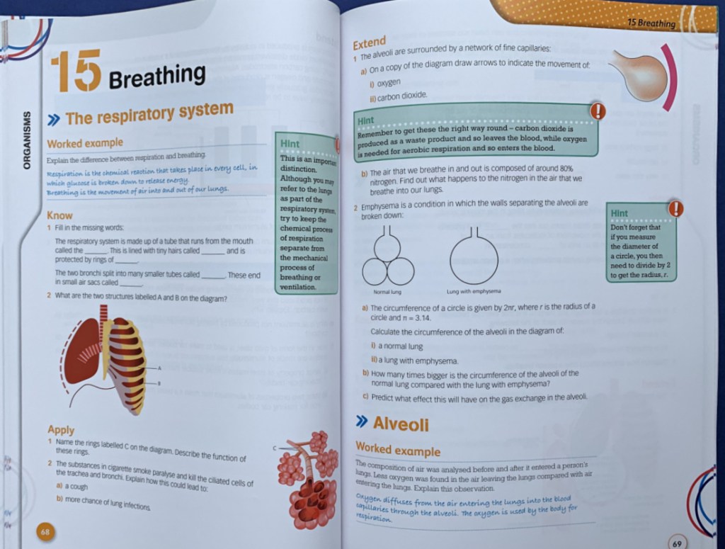 On first look we both like the layout of the practice book – blocks of information with illustrations, worked examples and lots of questions plus a clear distinction between what is core knowledge and what is extended knowledge.