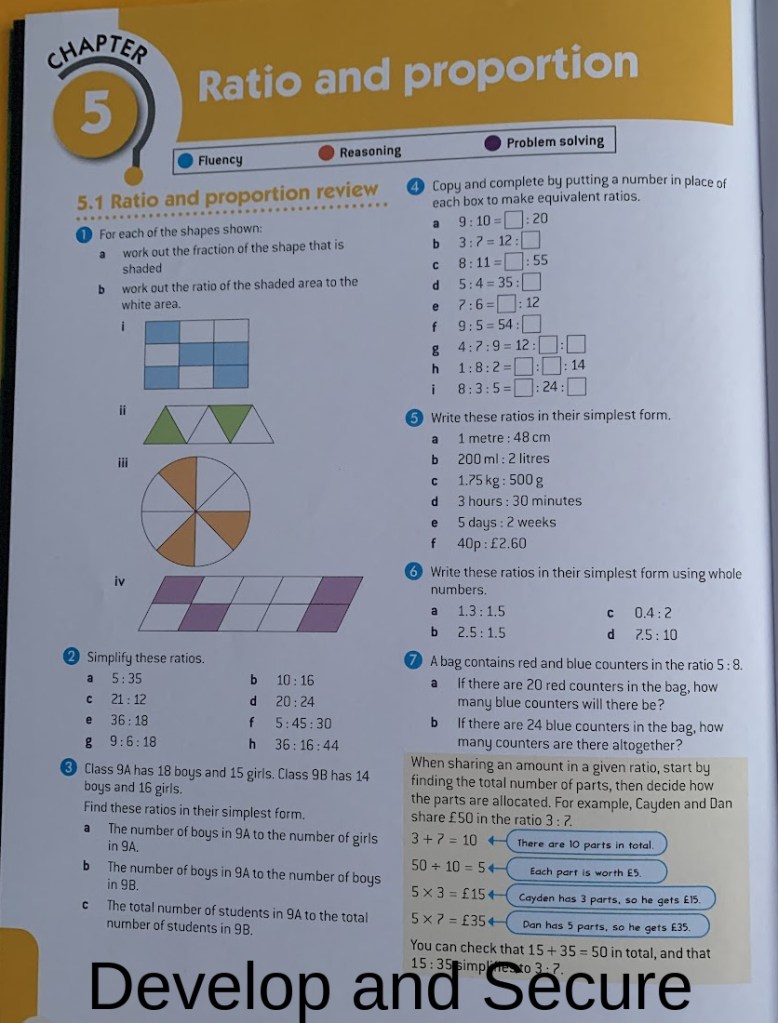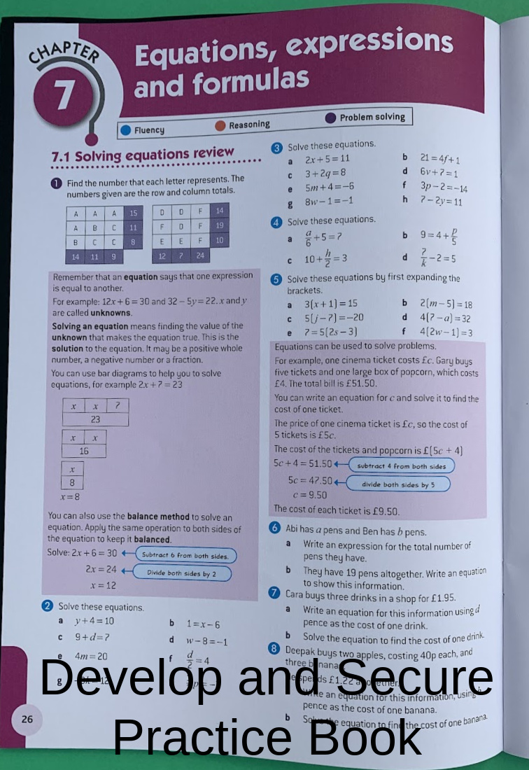 First impression of the Extend Practice Book – the questions in the Extend Practice book were more challenging and there were lots of problem solving type questions. Also the Develop and Secure Practice book has some summary reminders to help the student whereas the Extend Practice book has very few summary reminders.