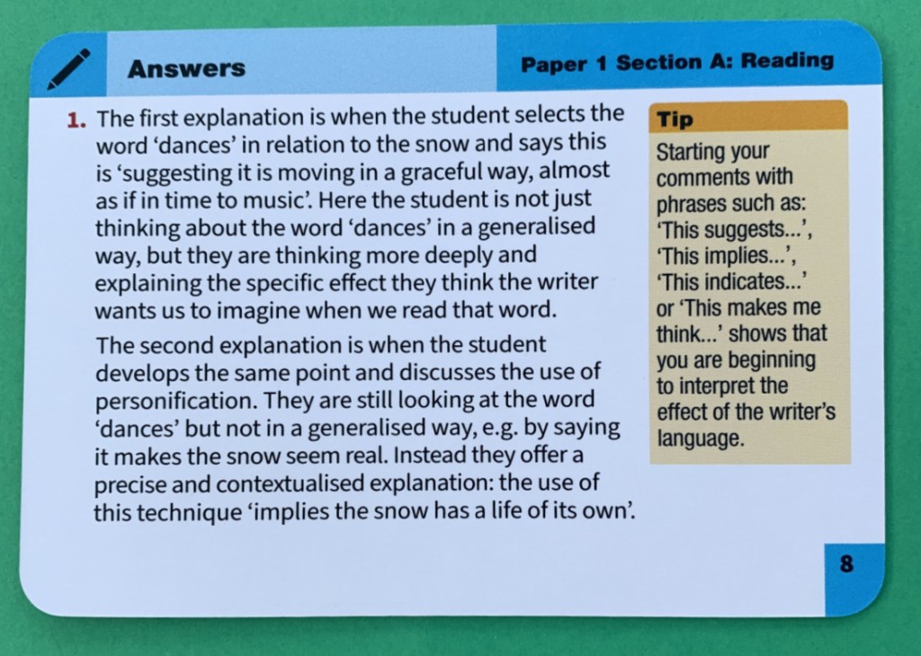 Oh and the Reading questions are also brilliant, I read a number of the cards, looked at the suggested answers and I was already feeling a lot more confident about how we are going to tackle English Language over the next 2 years.