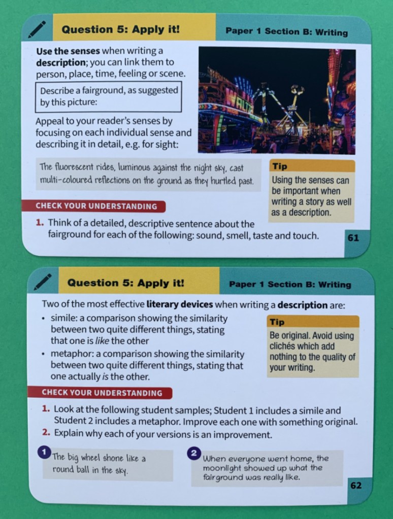 There are 80 cards and each card has a question on the front and the answers on the back. The cards are broken down into the different questions for Paper 1 and Paper 2. And I have to confess I really like that this is done in card format, they are just easy to digest, bitesize pieces of information, that focus your attention on key skills.