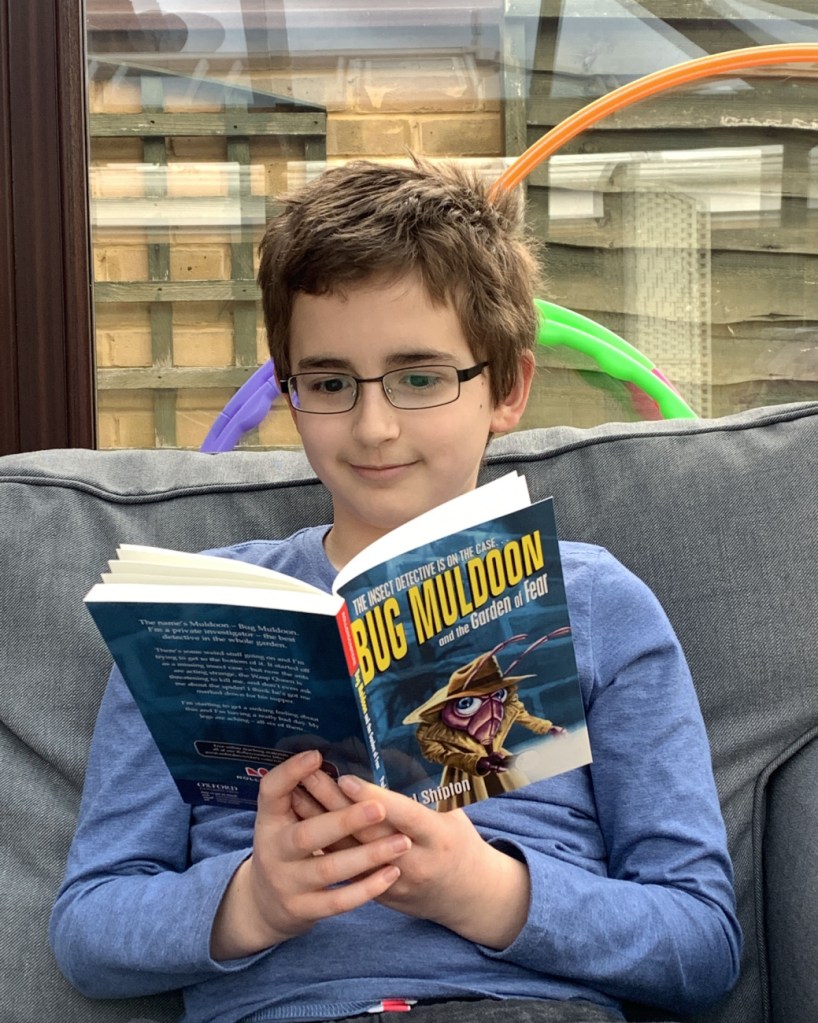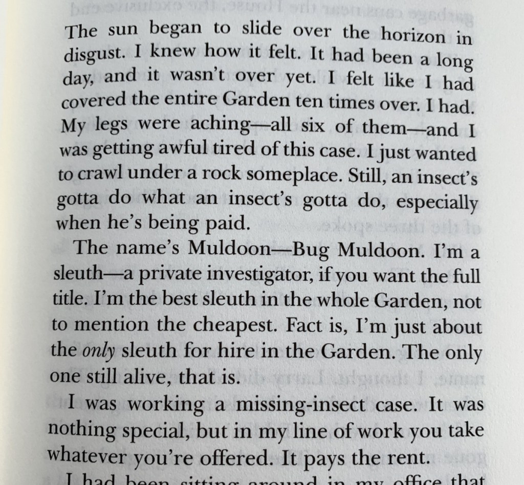 As soon as the book arrived I read the first 2 pages and I was chuckling and just knew this book was going to be a hit. I had meant to do it with just my son but my daughter heard us reading the story together and quickly joined us on the couch because she loved the way Bug Muldoon spoke (it reminded me of a 70’s detective show). And honestly all three of us LOVED this story, both kids did not want to put the book down and were totally drawn to the writing style, the characters and the whole concept of this little beetle living in someone’s back garden and working as a Private Investigator (my son has started coming up with some of his own scenarios completely inspired by this author).