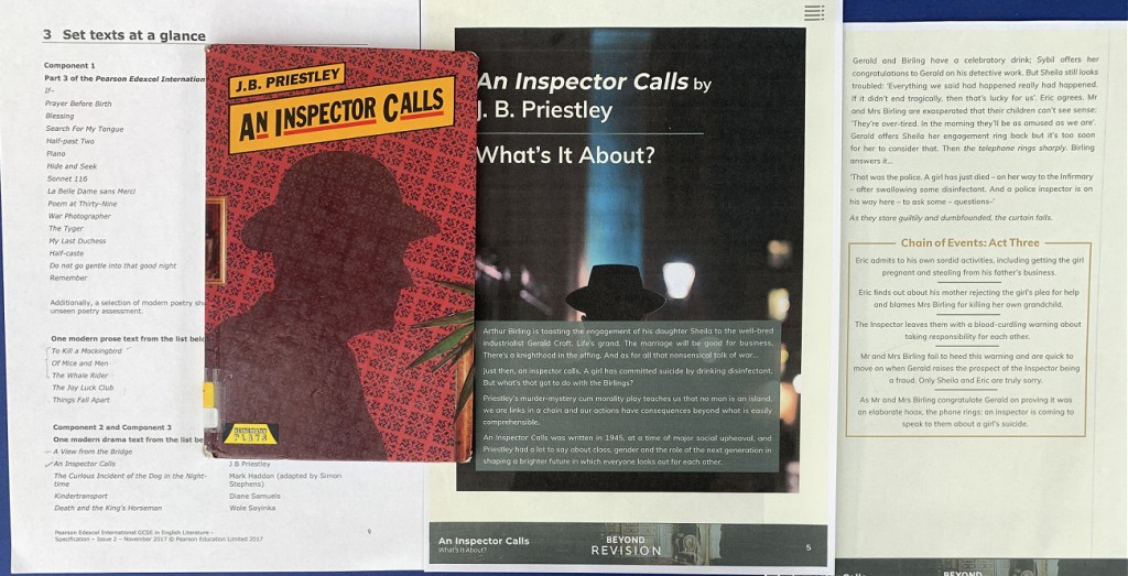 I found this really good GCSE Revision guide for An Inspector Calls from the Twinkl website which is perfect for our use and I also downloaded Twinkl’s lessons on An Inspector Calls.