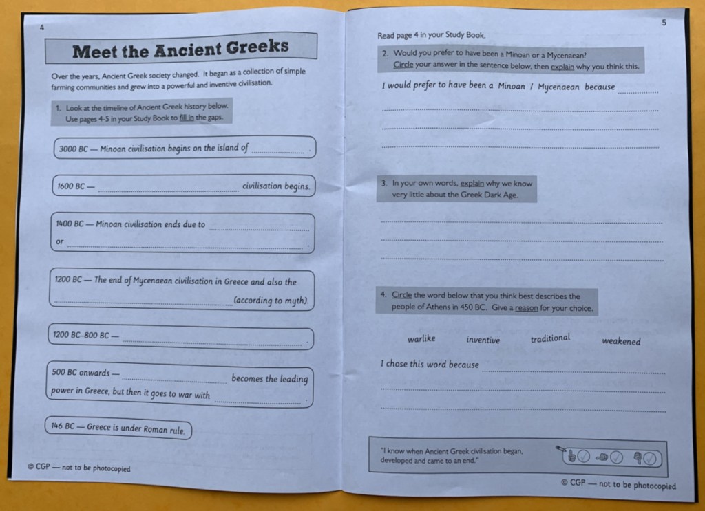 One of the topics we choose to cover this year was Ancient Greece. And one of the resources (well actually two but they work as a set together) that we have used is this Study Book and Activity book from CGP.