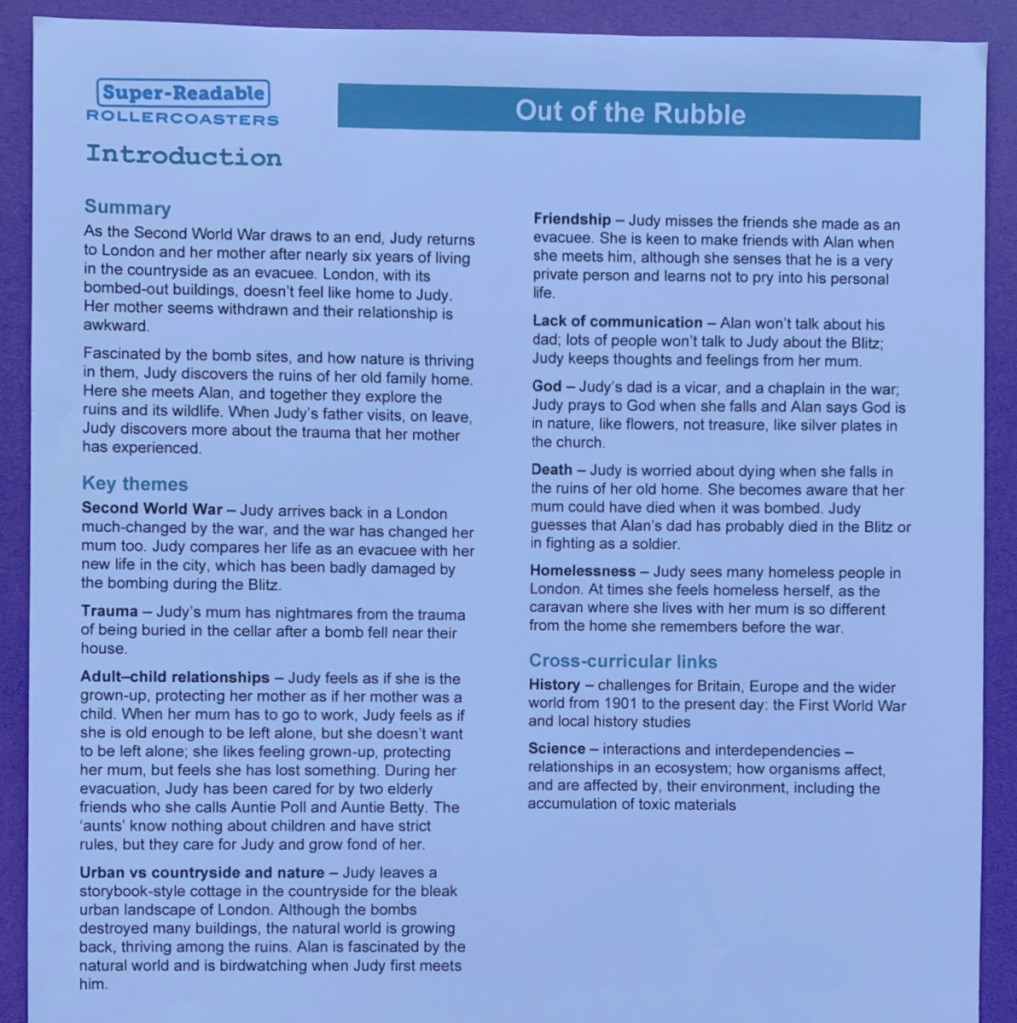 My kids and I are huge fans of the Rollercoaster stories and I love having access to these Free to download resource packs. Out of the Rubble is yet another excellent addition to this series and one both my daughter and I would recommend.